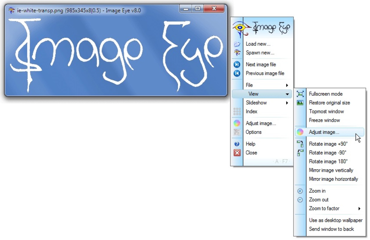 Image Eye is a specialized image viewer — made for the sole purpose of viewing images as quickly and practically as possible — nothing else! You get a window with the picture only